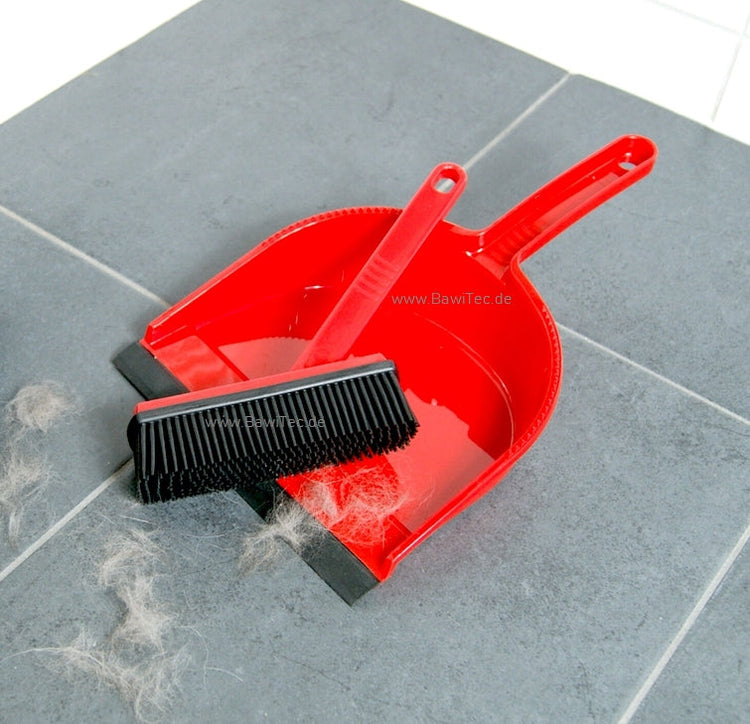 Robuste Kehrgarnitur Kehrset 2tlg. Kunststoff-Elaston-Borsten rot Handfeger und Metall-Kehrschaufel Set