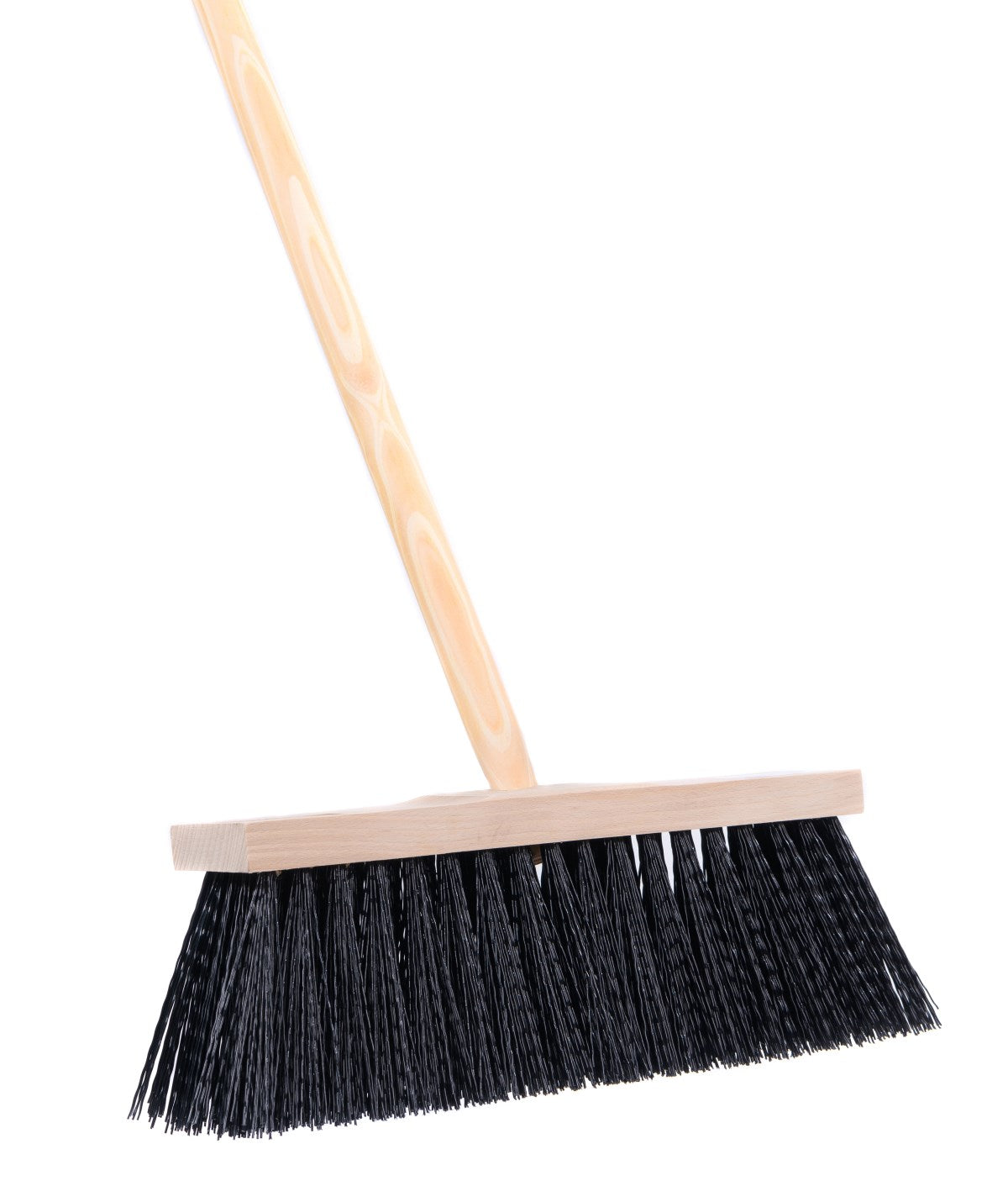Special broom for rough work, street broom, long plastic bristles, black with handle/wooden handle