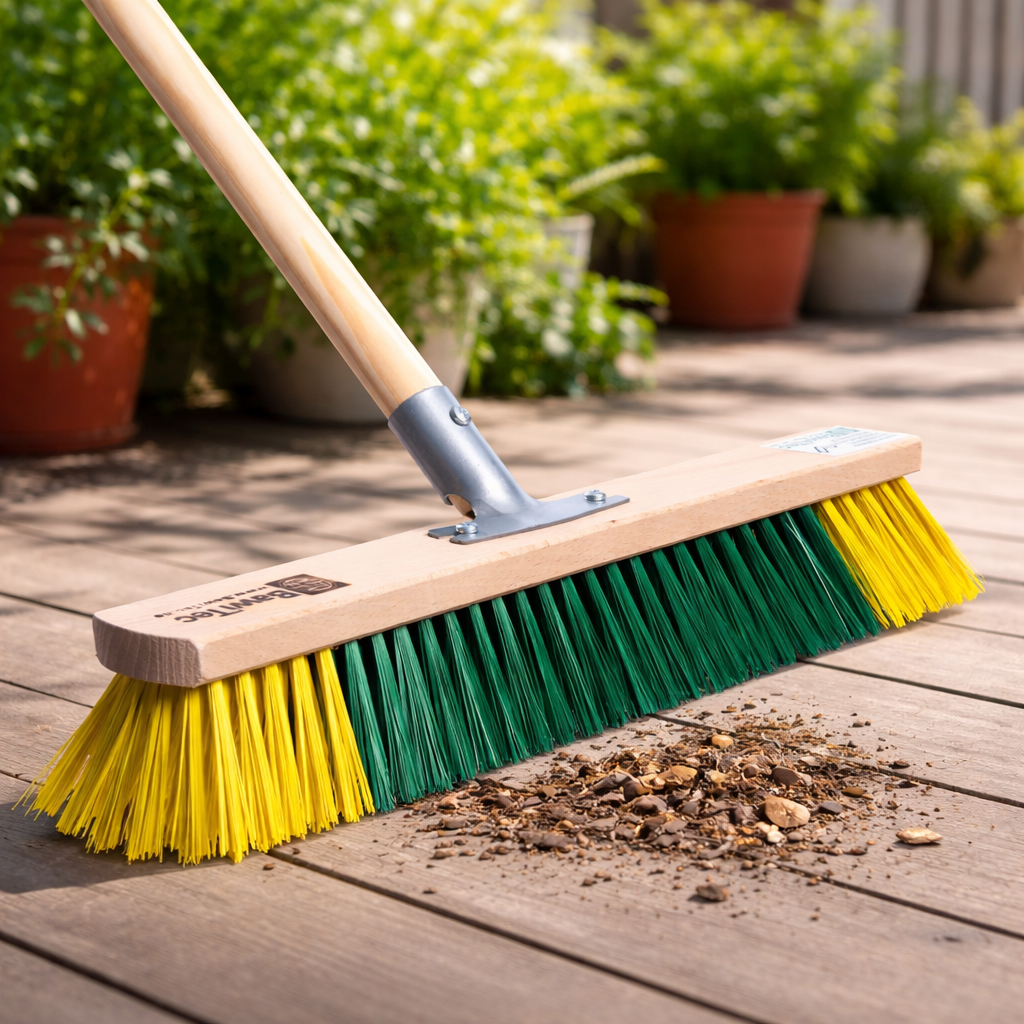Unsere eigenen BawiBlitz-Besen in verschiedenen Ausführungen mit speziellen zweifarbigen Kunststoffborsten aus Eralon-Elaston (Polyvinylchlorid) sind extrem robust, formstabil und temperaturbeständig bis ca. 60°. Der mittlere Härtegrad unser Besen ist für die universelle Verwendung im gesamten Außenbereich wie z.B. im Garten, Haushalt, Werkstatt und Hobbybereich geeignet. Unsere Bawi-Blitz-Besen sind perfekt für die Reinigung und Pflege von z.B. gepflasterten Gehwegen, Auffahrten, Terrassen und vielem mehr geeignet. Die dichten Borstenreihen ermöglichen das Kehren von feinen und auch gröberem Schmutz zugleich. Qualität, hergestellt in Deutschland.