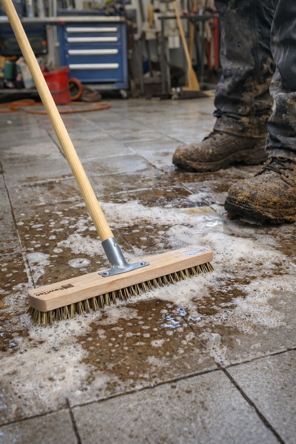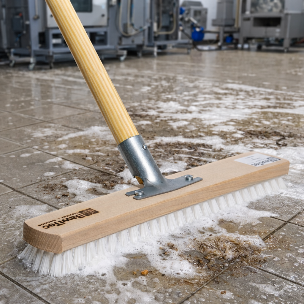 Dieser robuste Großraumschrubber eignet sich perfekt für die effiziente Reinigung großer Flächen in Industrie, Gewerbe und Haushalt. Mit einer Arbeitsbreite von 40 cm und einem stabilen Metallhalter mit verschraubter Befestigung ermöglicht er zügiges Arbeiten auf Innen- und Außenflächen. Der hochwertige Holzstiel (140 cm, Ø 28 mm) bietet optimale Kontrolle und Ergonomie. Wählen Sie zwischen widerstandsfähigen Polypropylen-Borsten (weiß, bis 90°C) oder UnionMix-Fasermix-Borsten (braun-beige, bis 70°C) – beide Varianten sind abriebfest, wasserfest und ideal für hartnäckige Verschmutzungen.