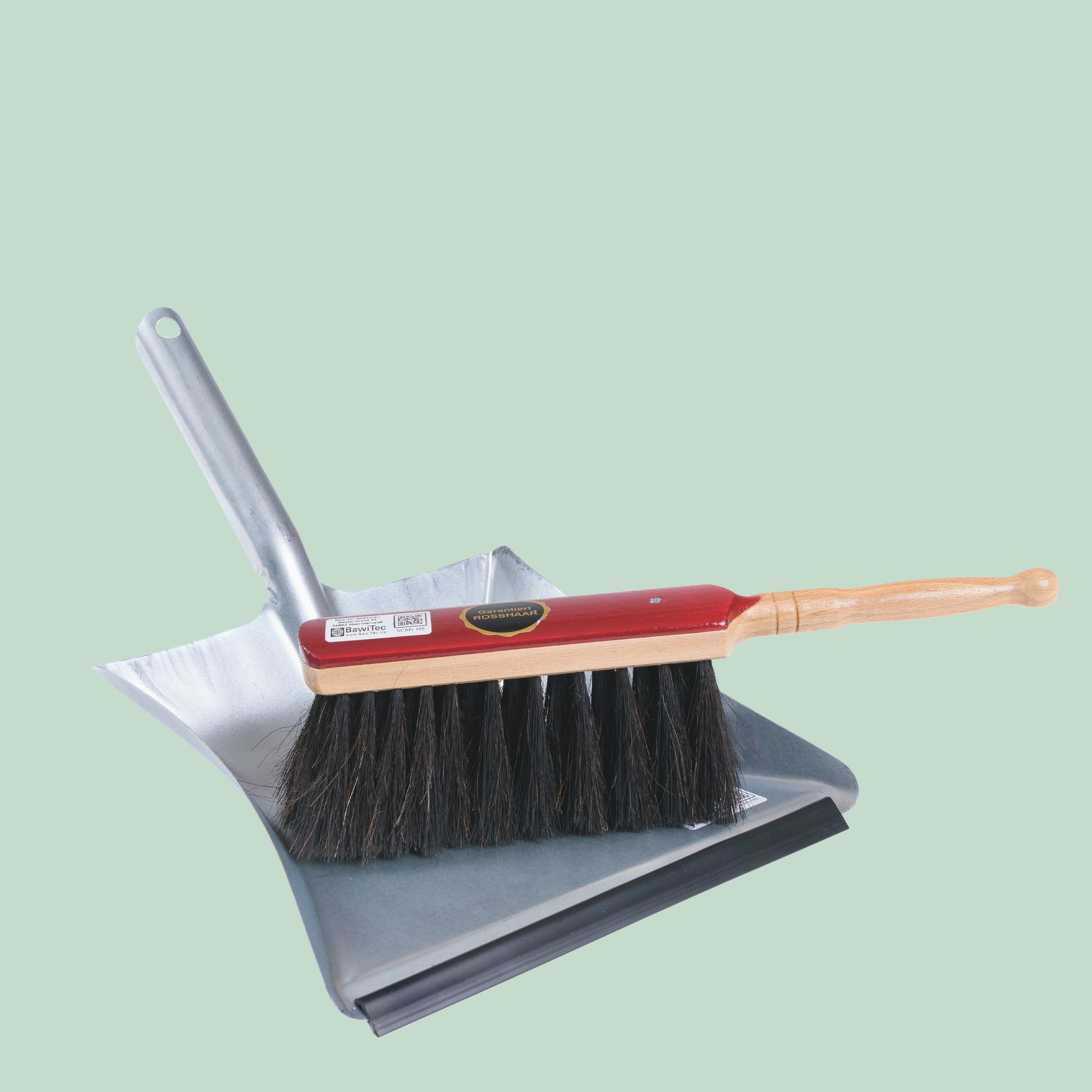 Hochwertige Kehrgarnitur Echt-Rosshaar-Borsten Kehrset 2tlg. Handfeger lackiert und Metall-Kehrschaufel mit Lippe