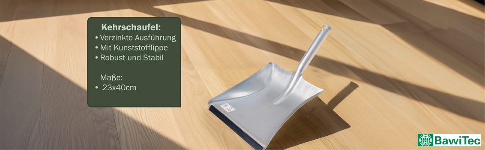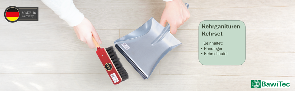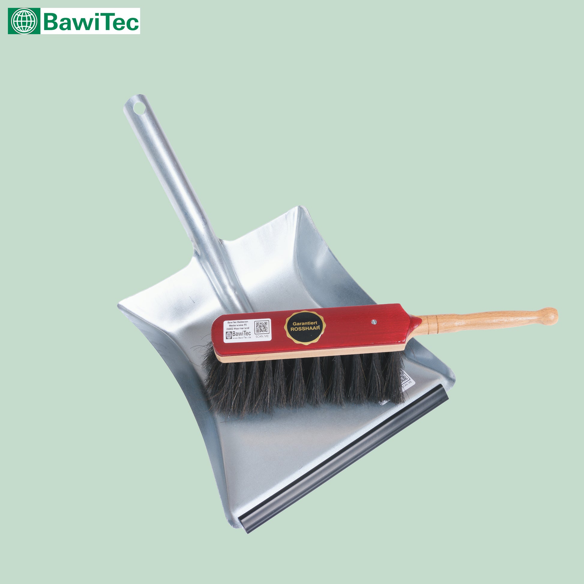 Die BawiTec Qualitäts-Kehrgarnitur kombiniert Handwerk und Funktionalität für anspruchsvolle Reinigungsaufgaben. Der Handfeger besticht mit echten Rosshaarborsten, die feinen Schmutz und Staub zuverlässig aufnehmen, ohne empfindliche Oberflächen zu beschädigen. Das stabile, lackierte Buchenholzgestell (29 cm) ist verschraubt und langlebig konstruiert. Die verzinkte Metall-Kehrschaufel (23x40 cm) mit Kunststofflippe und Aufhängeloch ergänzt das Set perfekt. Diese bewährte Kombination eignet sich für Haushalt, Handwerk, Hobby und Werkstatt – sowohl im Innen- als auch Außenbereich. Professionelle Qualität für anspruchsvolle Anwendungen.